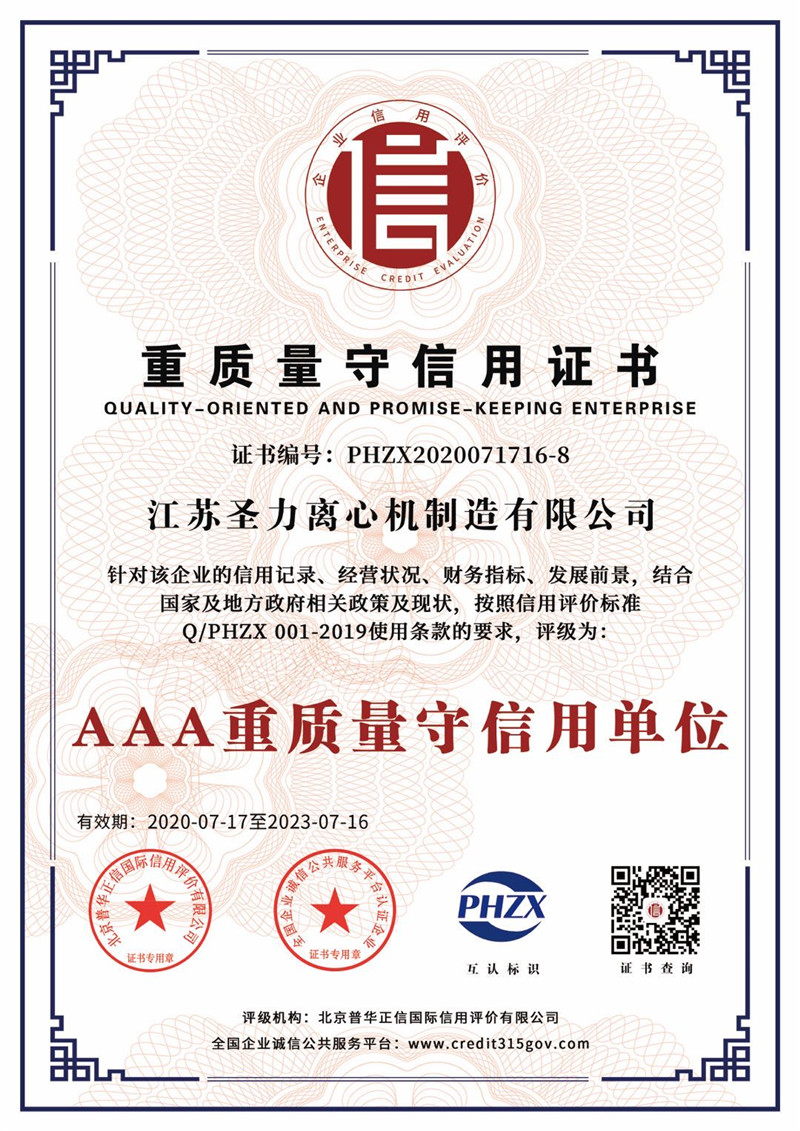 江蘇圣力離心機制造有限公司是國內分離機械行業(yè)中主要的離心機生產(chǎn)企業(yè),對離心機的研究、設計、制造有多年的歷史,擁有齊全的設備、完善的檢測手段。公司已通過IS09000國際質量體系認證、ISO14001環(huán)境管理體系認證、ISO45001:2018職業(yè)健康安全管理體系認證和CE認證,是江蘇省高新技術企業(yè),曾榮獲國家和地方多項榮譽稱號。